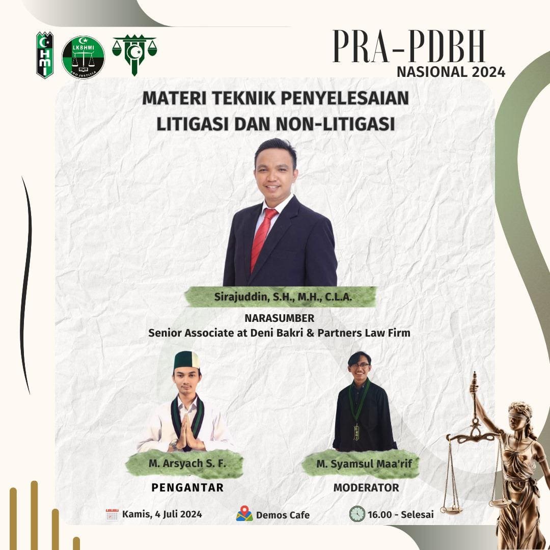 Sirajuddin Jadi Narasumber di LKBHMI Bandung: Materi Teknik Penyelesaian Litigasi & Non-Litigasi”
